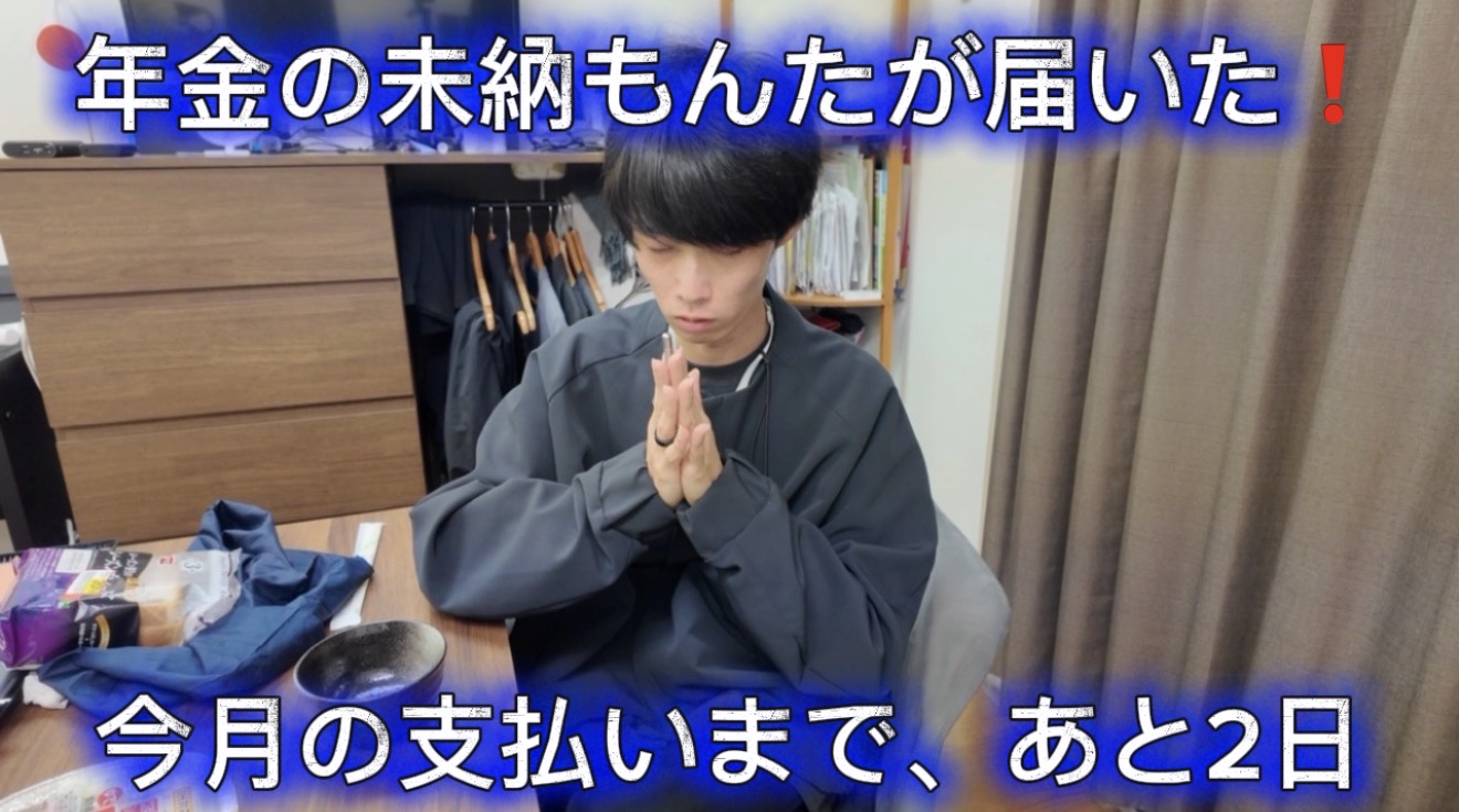 夕方16時50分頃に帰宅し、買い物の紹介が続きます。年金の支払いが滞っており、1万7510円の未納分をなんとか支払わなければならないという経済的な緊張感が正直に語られています。今月引き落とし予定で貯金残高は80,006円と確認し、何とか賄えそうだが油断できないと不安も吐露。そこで冗談交じりに「お金が入ってきますように🙏」と神頼みをするシーンでは、心細さと切実さが混在しています。一方、街中で消防車の出動が見られ、近隣で火災が起きた可能性に触れ、乾燥した季節の火災予防として古いコンセントのホコリの危険性についても考察。電源タップの買い替えを面倒くさがる自身を省みつつも、注意喚起を促しています。