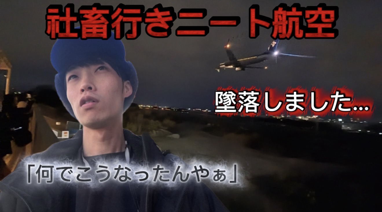 昼14時に五月山動物園付近へ到着後、動画のアップロードが電波不良で困難な状況が延々と続きます。再起動やバックグラウンドを消したり、試行錯誤を重ねるもネット速度は遅く、不調が続き精神的にも疲弊。さらに動物園は工事中で閉鎖されており、目的の地を断念。代替で伊丹空港へ向かうものの、日が沈み辺りは真っ暗。連続する挫折にモチベーションが低下しました。その後、大阪・兵庫上空に未確認飛行物体(飛行機)が複数確認されたとの情報に触れ、戦争の懸念や命の危機感を冗談混じりに訴え、不安が膨らむ様子が見られます(ジョークです🤣)。周囲の人からの奇異な目線も受けて現実に引き戻されつつ、命への恐怖と精神的な焦燥が露呈しています。