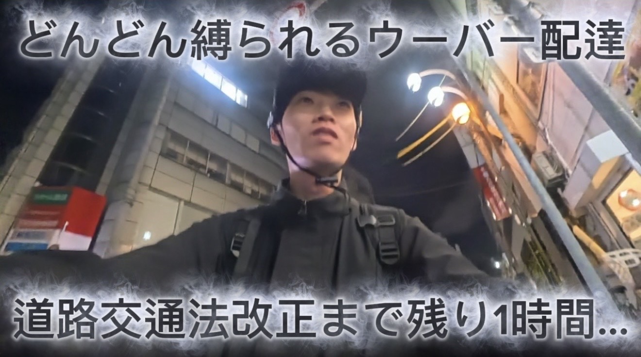 23時30分からは終業・エンディングトークを展開。日中~夜にかけて「合計17回・9974円」の収益報告、夜に「5~6回を一気にさばけた」といった数字的裏付けも伝えつつ、改正直前の緊張感が極まります。大阪市内でのパトロール強化予想、残り30分というカウントダウン、そして「Uberやめよう」「ちゃんと就職しよう」といった自身の葛藤や将来への不安、それでも今やるべきことを全うしようとする責任感が切々と語られます。YouTubeらしいエンディングとして「評価・チャンネル登録・ブログ案内」なども行われ、変わりゆく時代の中で生きる“働き方”と向き合う個人のリアルな記録として幕を閉じました。