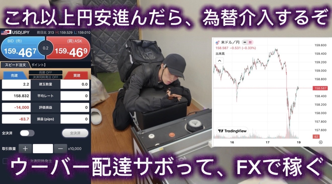 この動画は、FXトレードを中心に日常を実況する大阪翔平氏による1日の記録である。序盤で円安の急騰に振り回されつつ、相場観やリアルな損益状況、介入を意識した資金移動、イランとアメリカの合意報道による為替の急変、細かなトレード戦略まで、臨場感あふれる語りで詳細に展開される。また、Uber配達や食生活など「働かない系ニート」の日常要素も随所に混ざり、最終的にはリスク管理の大切さと今後の相場展望で締めくくられる。相場の緊張感と等身大の生活、勝負の難しさが絶妙に融合したリアルなトレード・ドキュメントである。