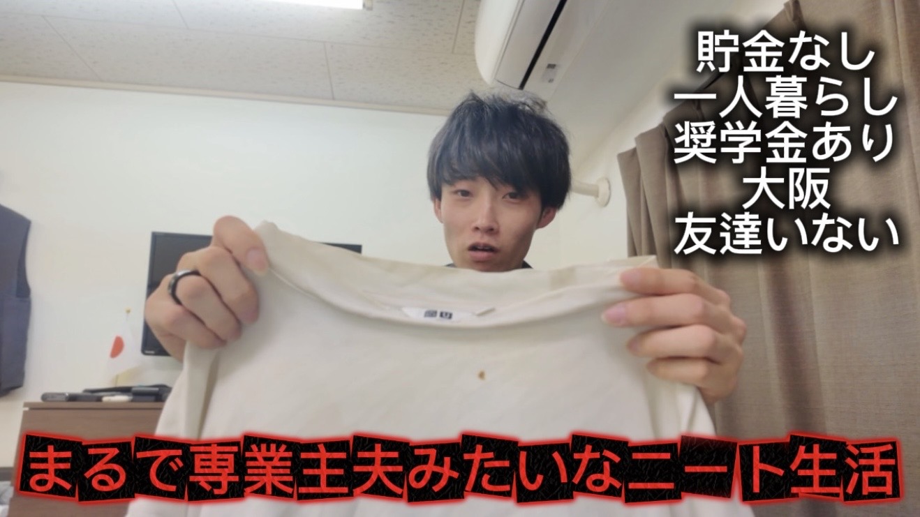 本動画は、ニートである大阪翔平の一日を追った日常ルーティンと、衣類のケアや地震・国際情勢など現代日本社会の断面が交差する独特のホームビデオである。朝の日常作業から、生活知恵のトライ&エラー、さらに地震や国際問題に触れる中で、日々の不安や“人間”としての素直な感慨が交錯する。動画はコミカルな自虐と等身大の関心事、そしてリアルタイムの社会問題へのコメントを通して「普通」への希求と現実のギャップ、そして身近な世界と大きな社会のつながりの妙を映し出している。